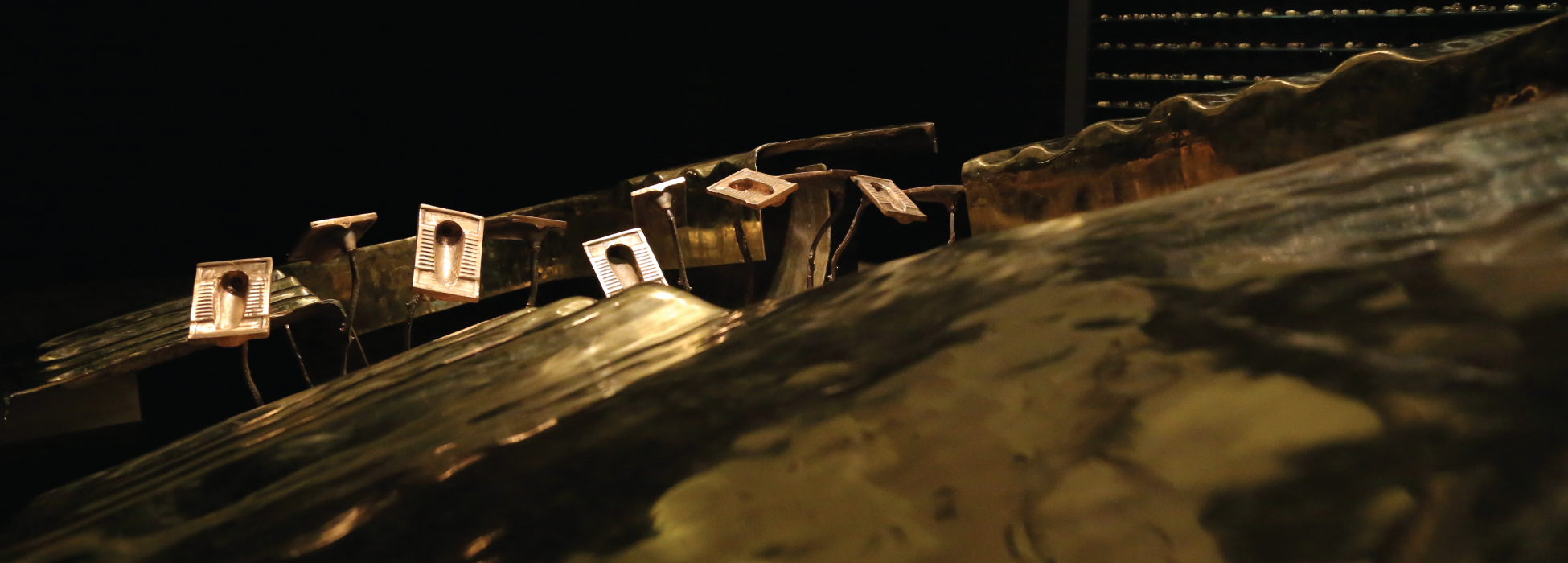 A representation of the production of thoughts, as they emanate from the embedded experiences of everyday life or as they emerge from the memories and associations of the past is itself the core objective. Akhilesh Kumar brings forward a certain consciousness of the thoughtfulness of the human mind, the inherent nature of the thinking process and the trajectory that thoughts may assume over time. The thoughts that occur during analytical procedures of scrutinizing the world, the identification of social issues and an ensuing aspiration for a call to action are brought forth for acknowledgement. It is this on-going development of an intermingling web of thoughts that predominates the human predicament, the constant dynamism of the fluidity of this network and the temporality of it all that form the conceptual genesis of the artworks. Akhilesh explains his work, he metaphorically ties up the process of release of faces matter to the rejection of unwanted thoughts and ideas, ultimately leaving the toilet to be a fertile place for the germina - tion of new thoughts.